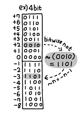 -n = ~n + 1 과 같은 관계로 표현할 수 있다.