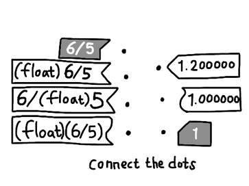 C언어에서 정수/정수 연산의 결과는 정수(몫)로 계산된다.