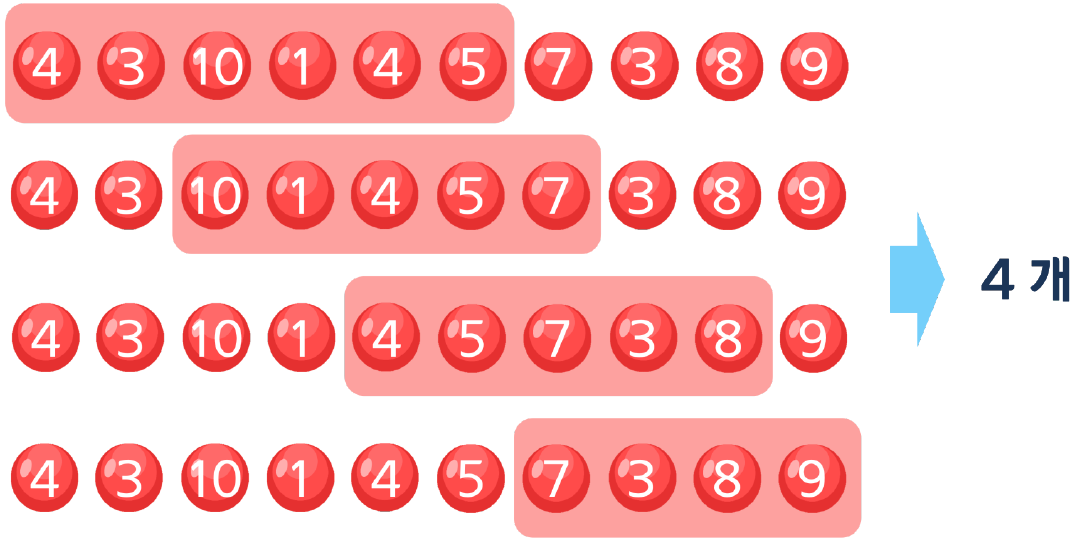- 연속 부분 수열의 개수를 2초 안에 구할 수 있다.