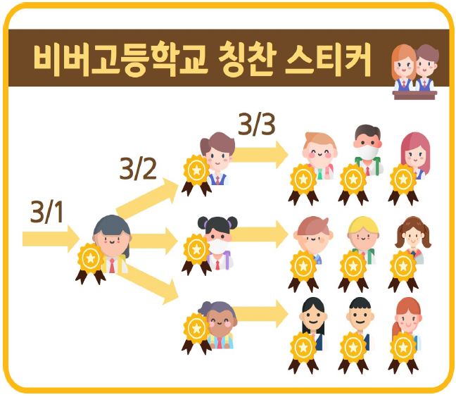 - 3월 1일에 학생 중 한 명을 선정하여 칭찬 스티커를 발급한다.